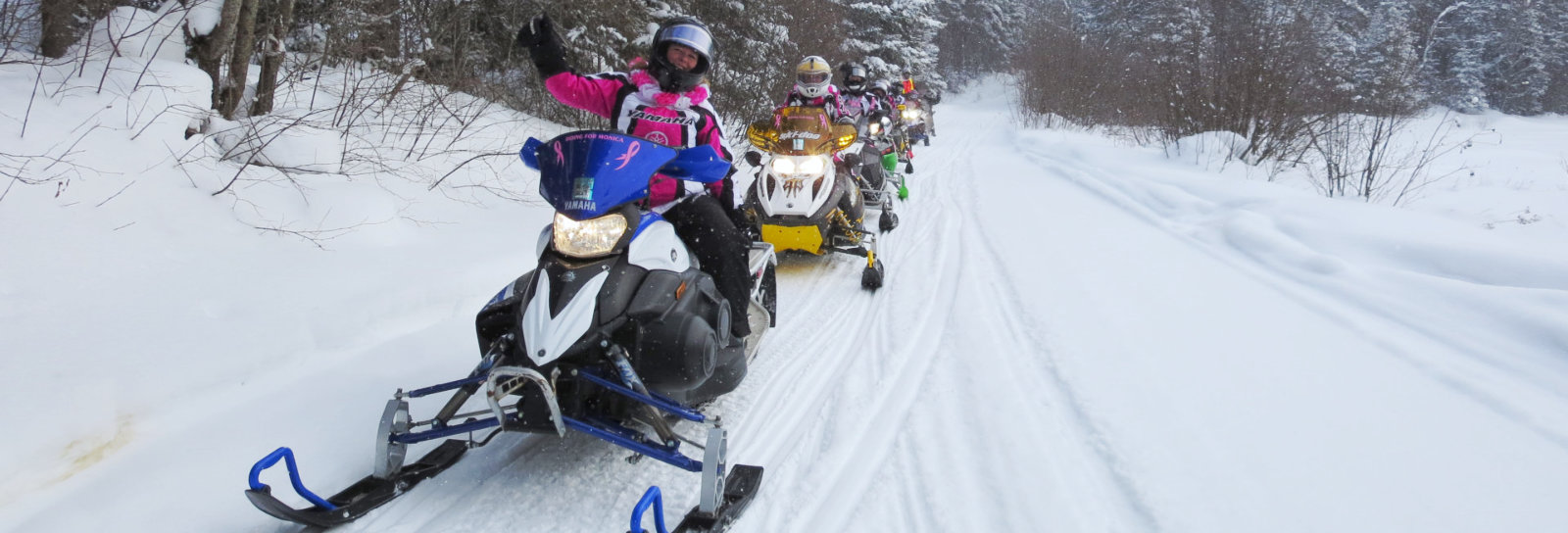 One fall evening, Kelly’s good friend, Suzy Stenoff, visited Ken & Kelly for dinner. After dinner Kelly & Suzy were sitting on the deck over-looking Georgian Bay. They were discussing all of the challenges that Kelly had faced and was facing during her battle with breast cancer. They decided they wanted to change that for others. Kelly was determined to turn her diagnosis into something good! They first considered having a golf tournament, then could not hold back their laughter at how they would host a golf tournament when neither knew a thing about golf! As they continued to brainstorm this, Suzy noticed Kelly & Ken’s snowmobiles which were off to the side and covered. She asked Kelly about her passion for snowmobiling and just like that they idea for the Snow Run was formed. Kelly wanted the theme to be an all-women snowmobile ride – Women helping women! The concept would be to ride the trails and raise awareness at the same time raising funds to help financially assist those diagnosed with breast cancer. The first Snow Run (January 2000), the event was essentially “rained out”! However that did not stop the spirit if the women who still came out and helped raise $10,000. The event has continued to grow since and continues today.